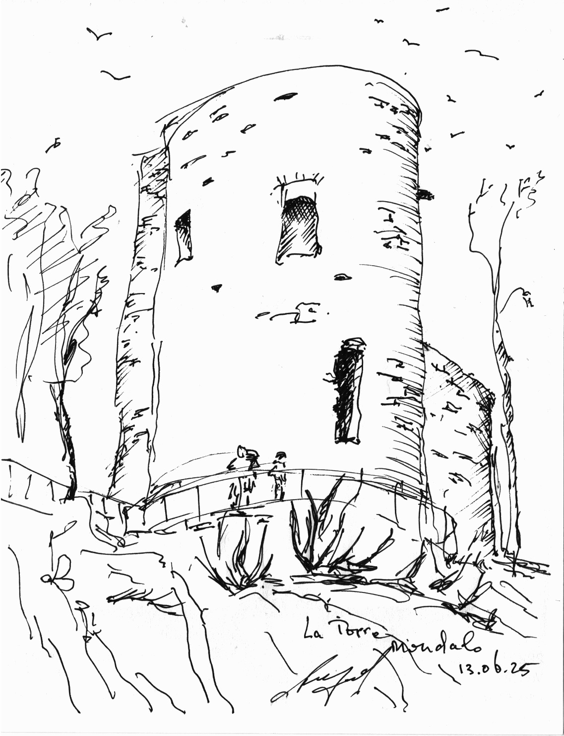 "Узники науки". Дворик библиотеки университета г. Феррара. Библиотеку устроили в здании бывшего сахарного завода. Рисунок подарен Льву Титарчуку - ученому, другу и человеку - который провел здесь не один год. Надо иметь в виду, что университет г. Феррара заканчивал Николай Коперник. Ноябрь. 2016. Италия. |