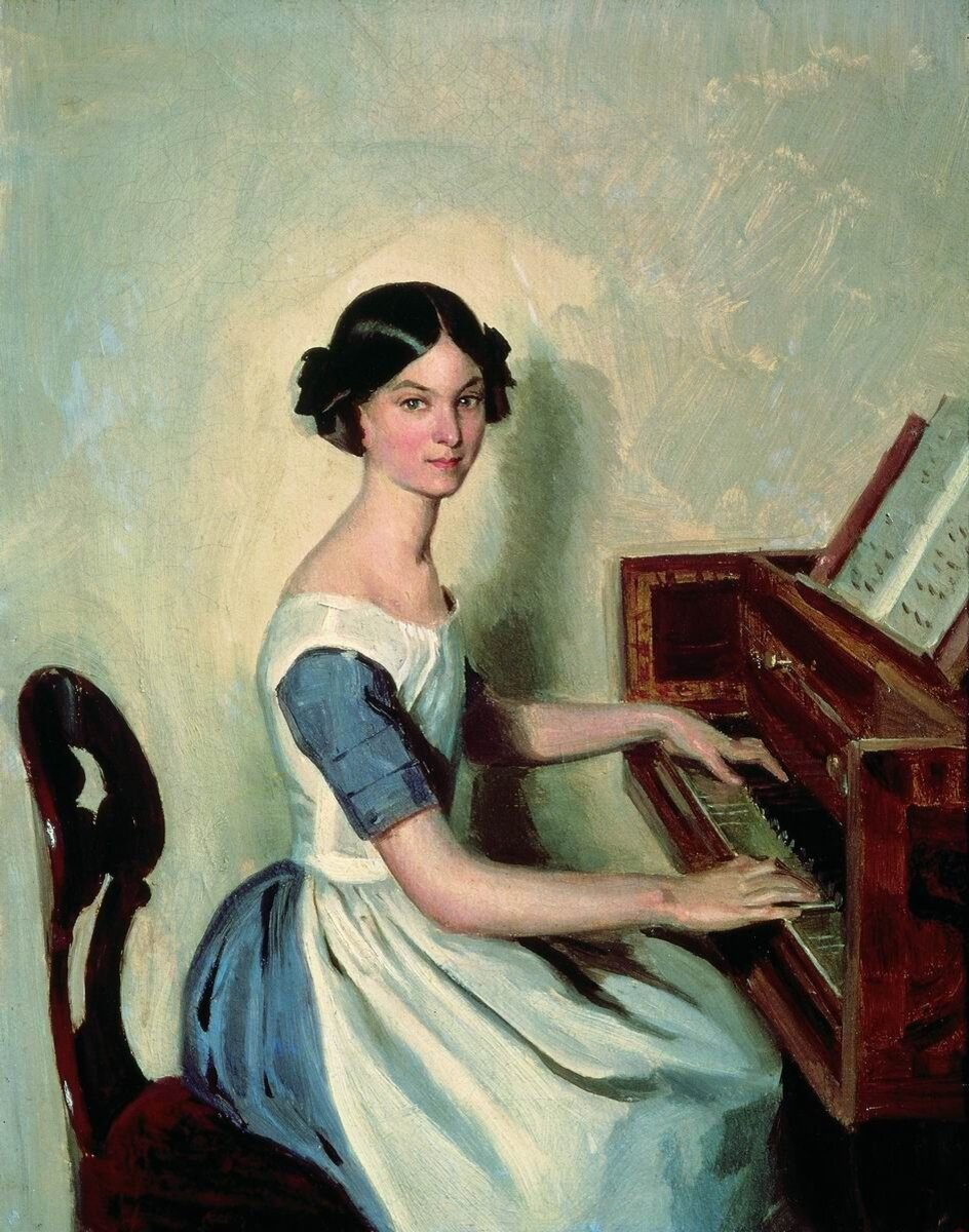 “А там, где детали художнику не нужны (как в портрете Жданович за фортепиано), так и вовсе живопись опережает саму себя – стена за плечом пианистки никак не может быть написана в 1849-м, ей место у Дега” (http://loveread.me/read_book.php?id=100990&p=54 .