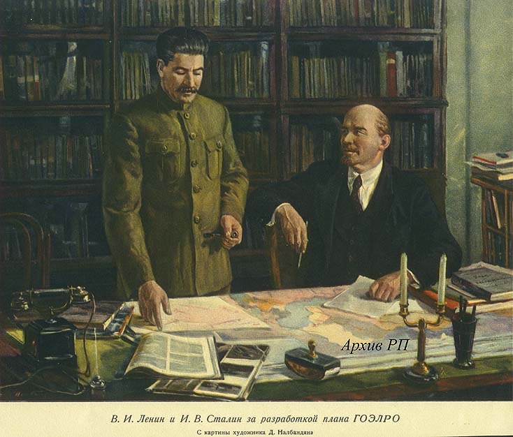 В.И.Ленин и И.В.Сталин за разработкой плана ГОЭРЛО, картина художника Д.Налбалдяна
