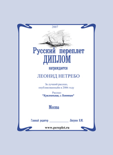 Лауреат конкурса "Русского переплета" за произведения опубликованные в