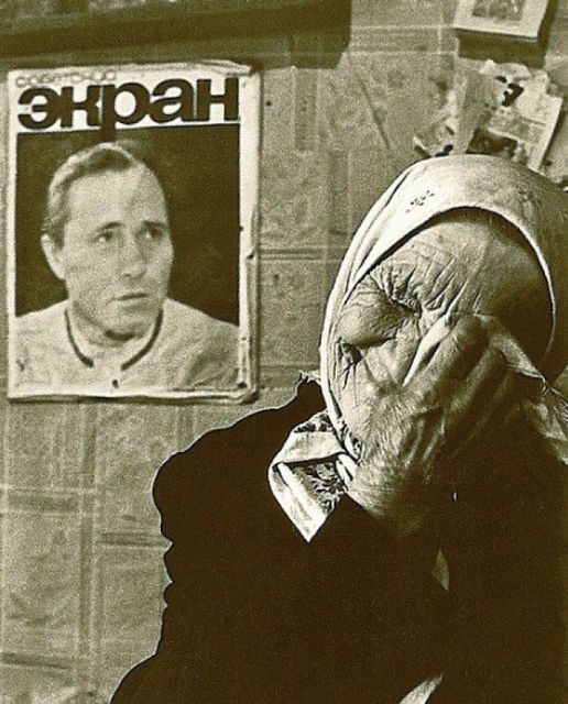 Этот снимок сделан в момент, когда ей сообщили о смерти Шукшина... Через год Ефимия Быстрова и сама умрет, замерзнув на печке... Позже, жители деревни на её могиле установят памятник с фотографией-кадром из фильма.