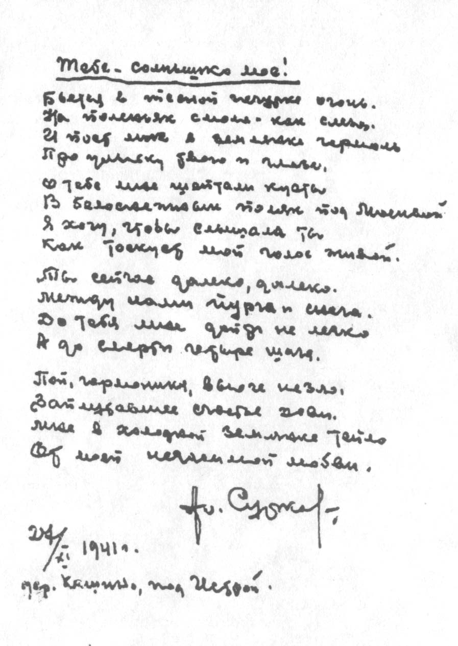 "Русского переплета" дочь Алексея Суркова - автора бессмертной "-емлянки" - подарила нашему журналу копию книжки поэта, изданнной в 1941 году.