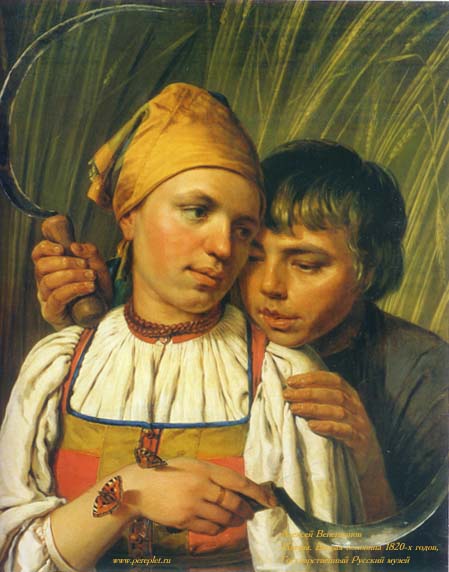 Темы и персонажи этих произведений, а также и сам метод их создания - путём углублённой работы с натуры - противоречили установкам АХ и сыграли решающую роль в становлении нового художественного направления, в основе которого лежало стремление к правдивому отражению жизни. Такая направленность интересов В. была связана с демократическими воззрениями передовой части русского общества периода 1810- 1820-х гг. Стремясь увидеть в действительности не только характерное, но и прекрасное, В. в своих картинах создаёт отмеченный чертами идеализации поэтический образ крестьянской жизни, воспевает красоту труда и природы.