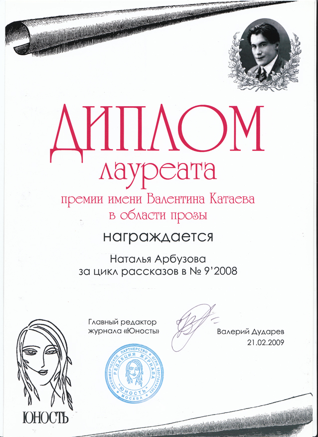 Наталья Арбузова стала лауреатом премии Валентина Катаева