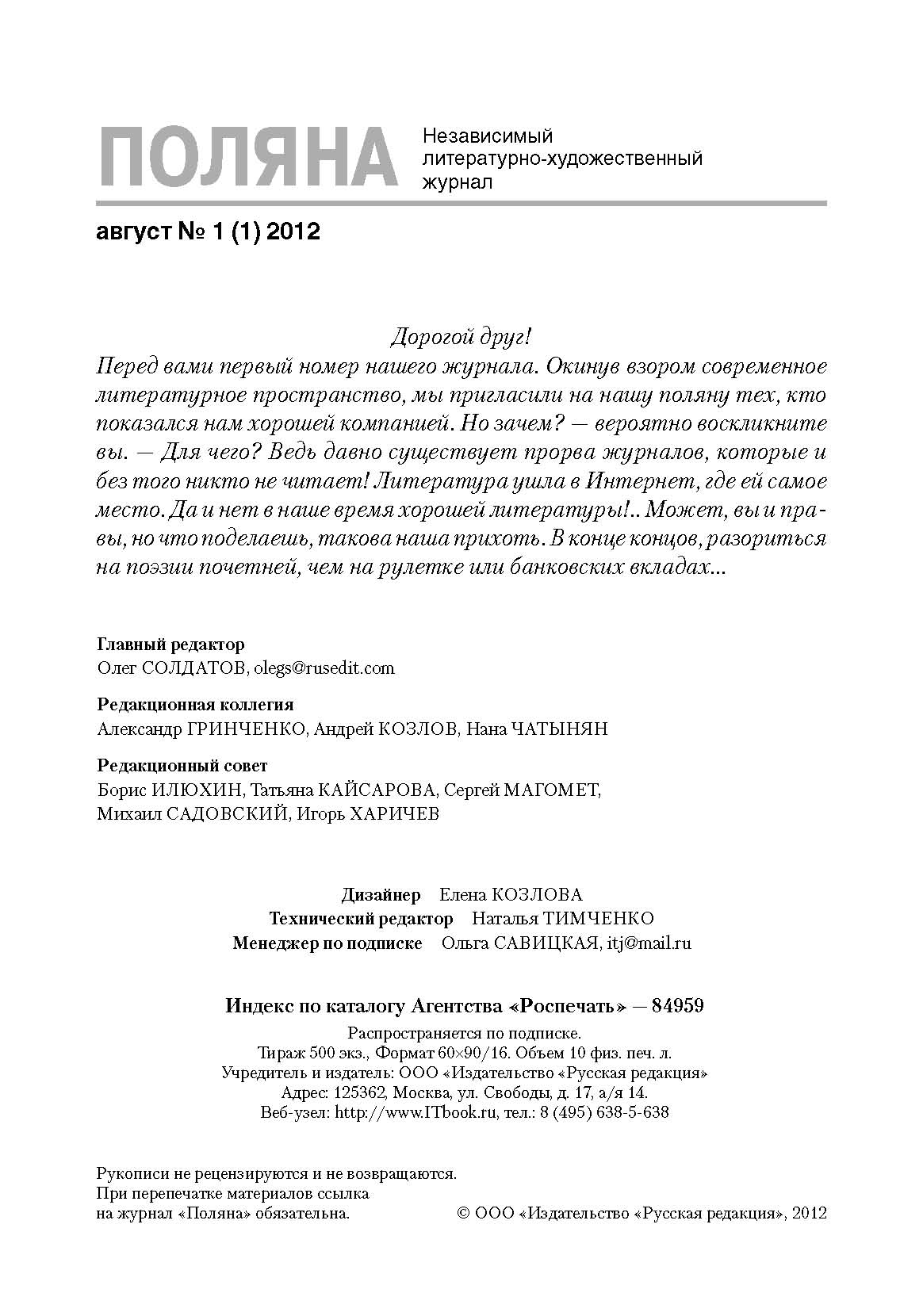 Вышел первый номер Независимого литературно-художественного журнала "Поляна"!