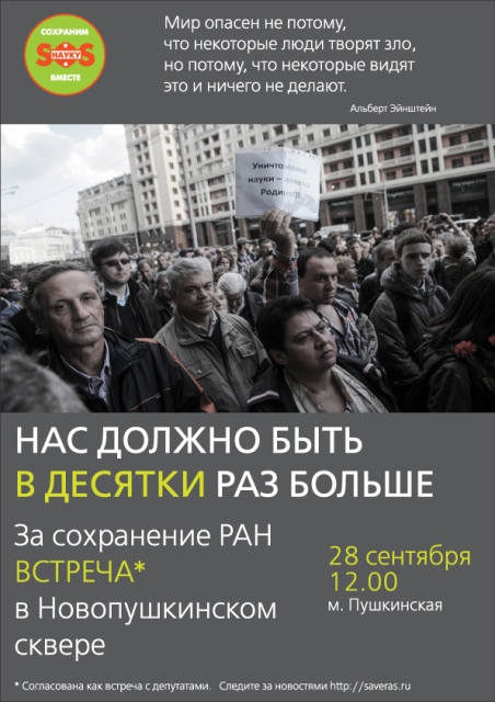 28 сентября в Новопушкинском сквере в 12.00 : Сохраним науку вместе!