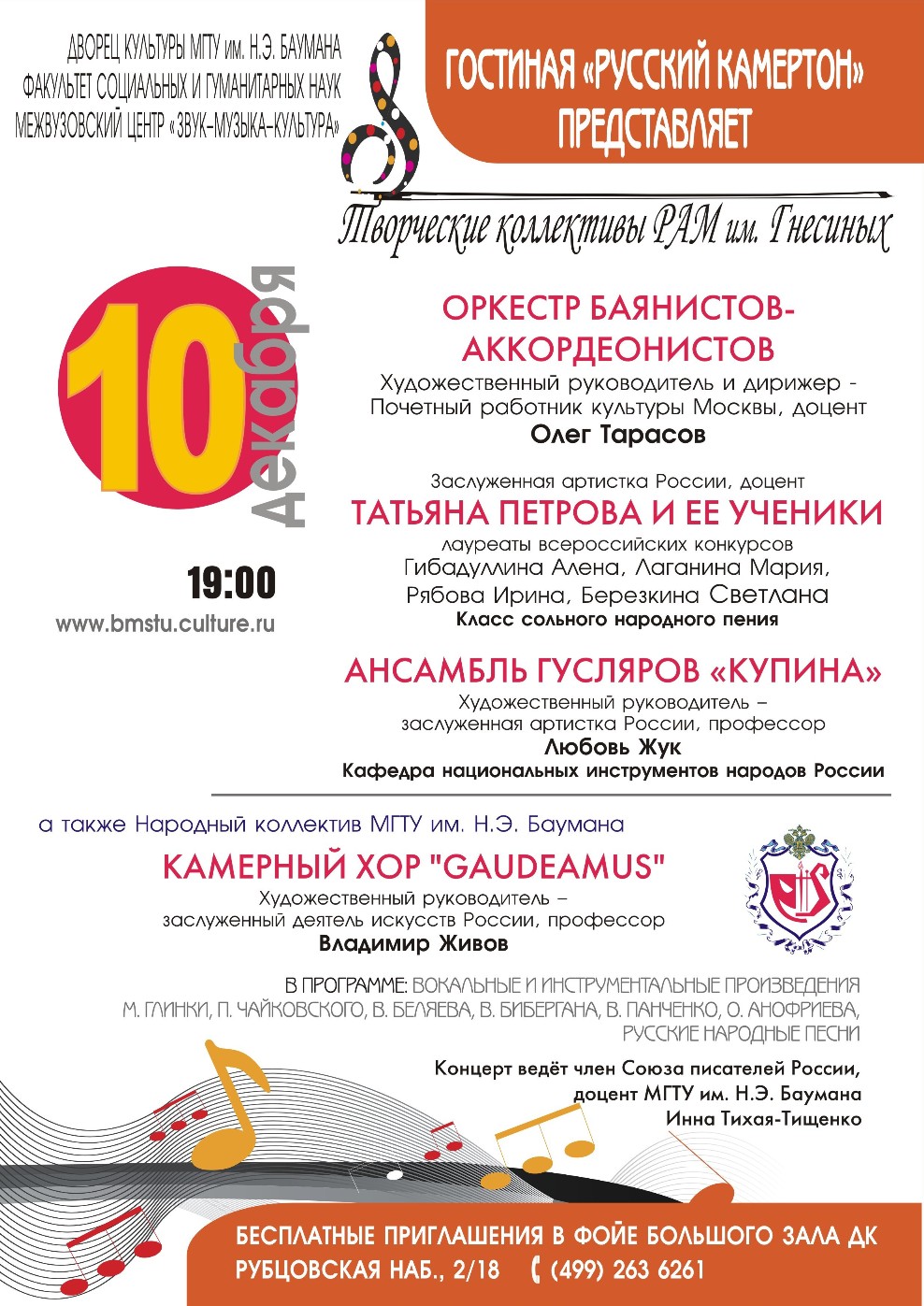 10 декабря 2013 года "Русский камертон". Вход свободный.