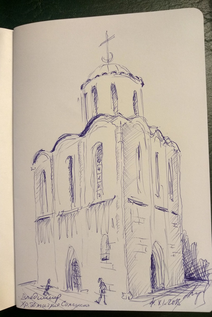 Решил отметить этот праздник посещением старинного русского города Владимир. Зашел в Дмитриевский Храм 12 века. Замечательное творение русского зодчества. Не удержался - сделал набросок...