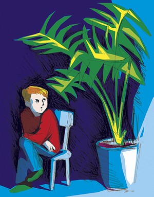 в кадке растет. Елка - она ведь большая; за нее и спрятаться можно,