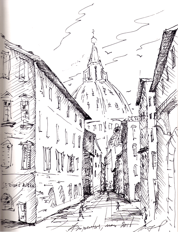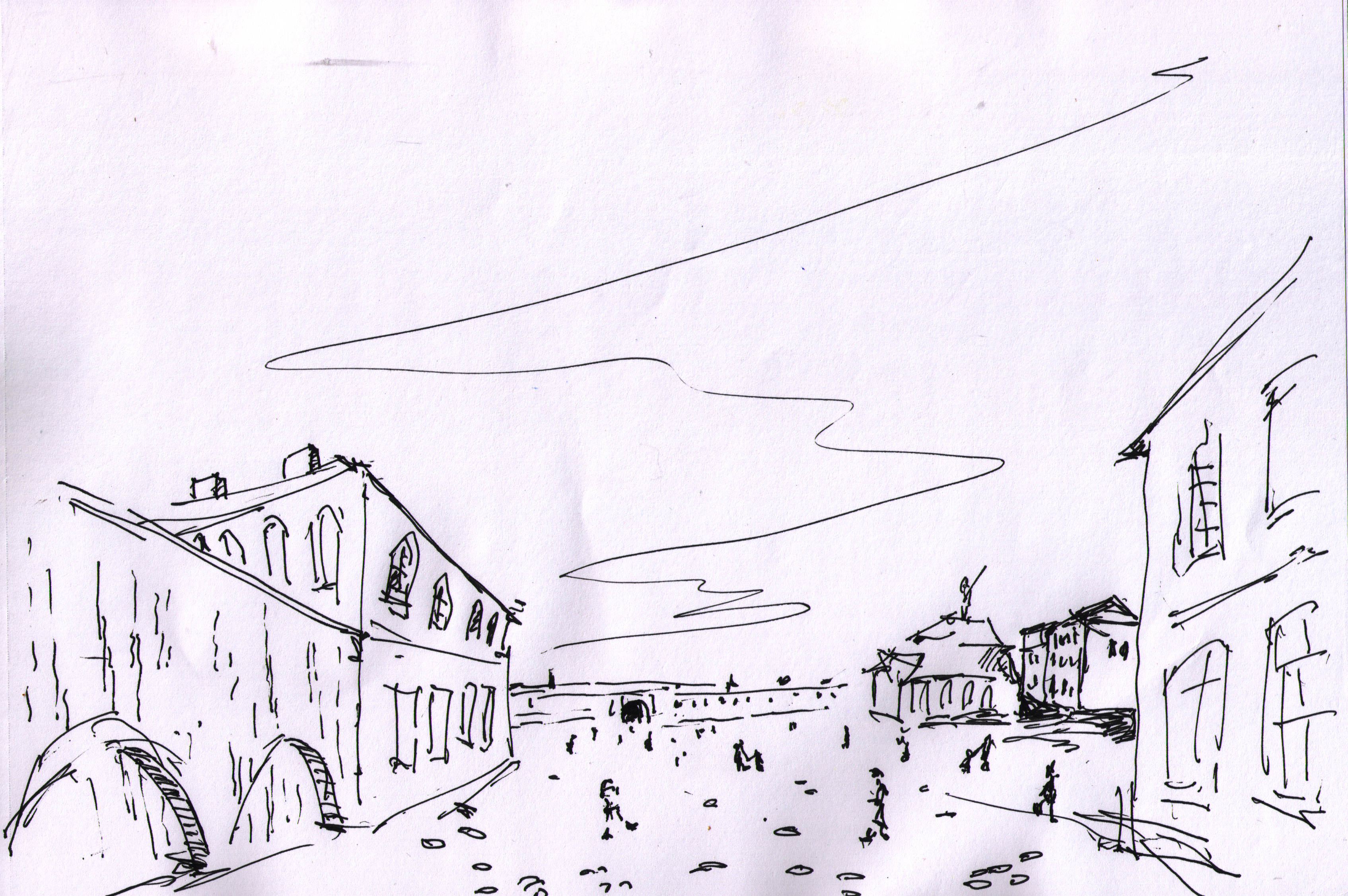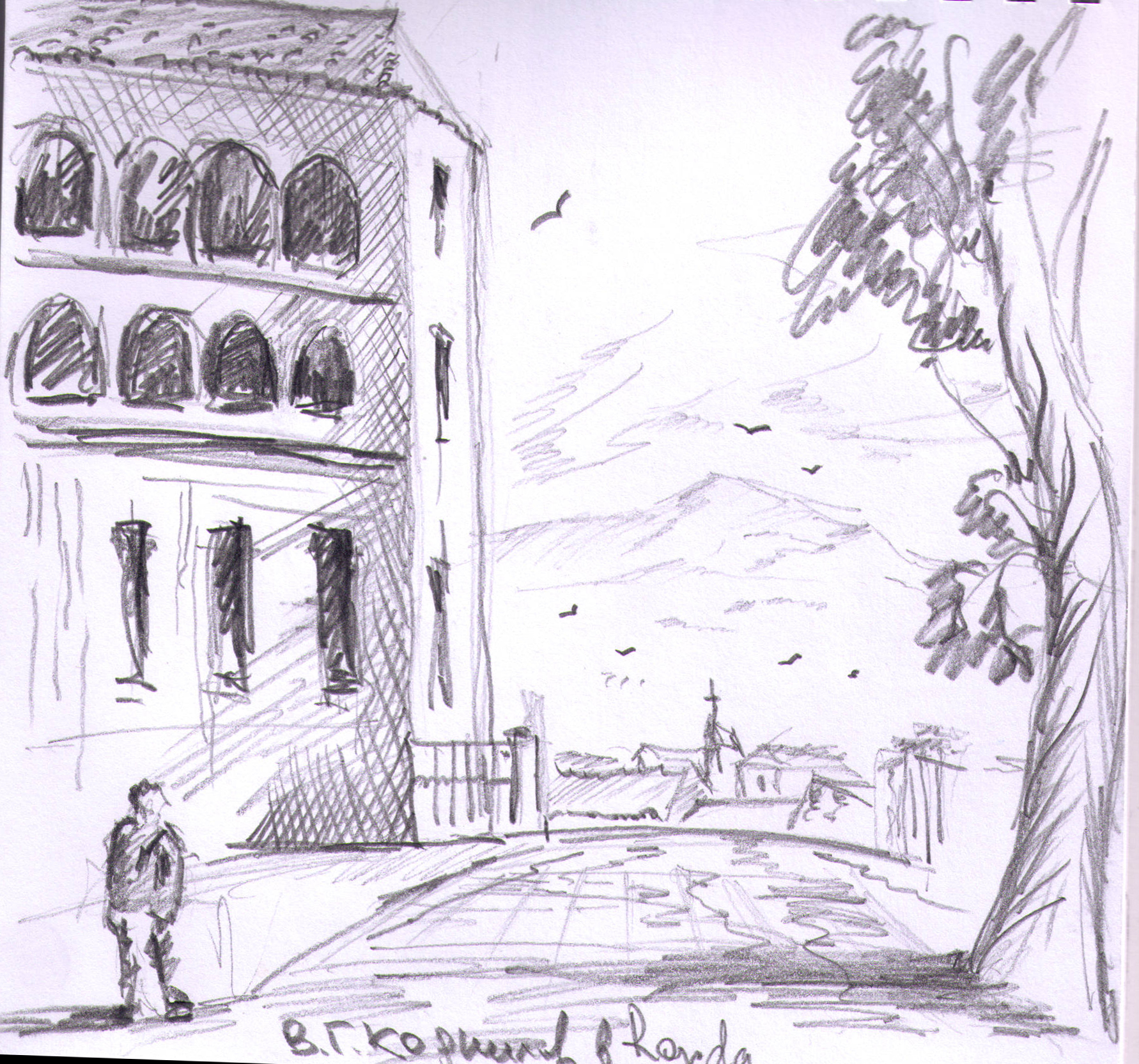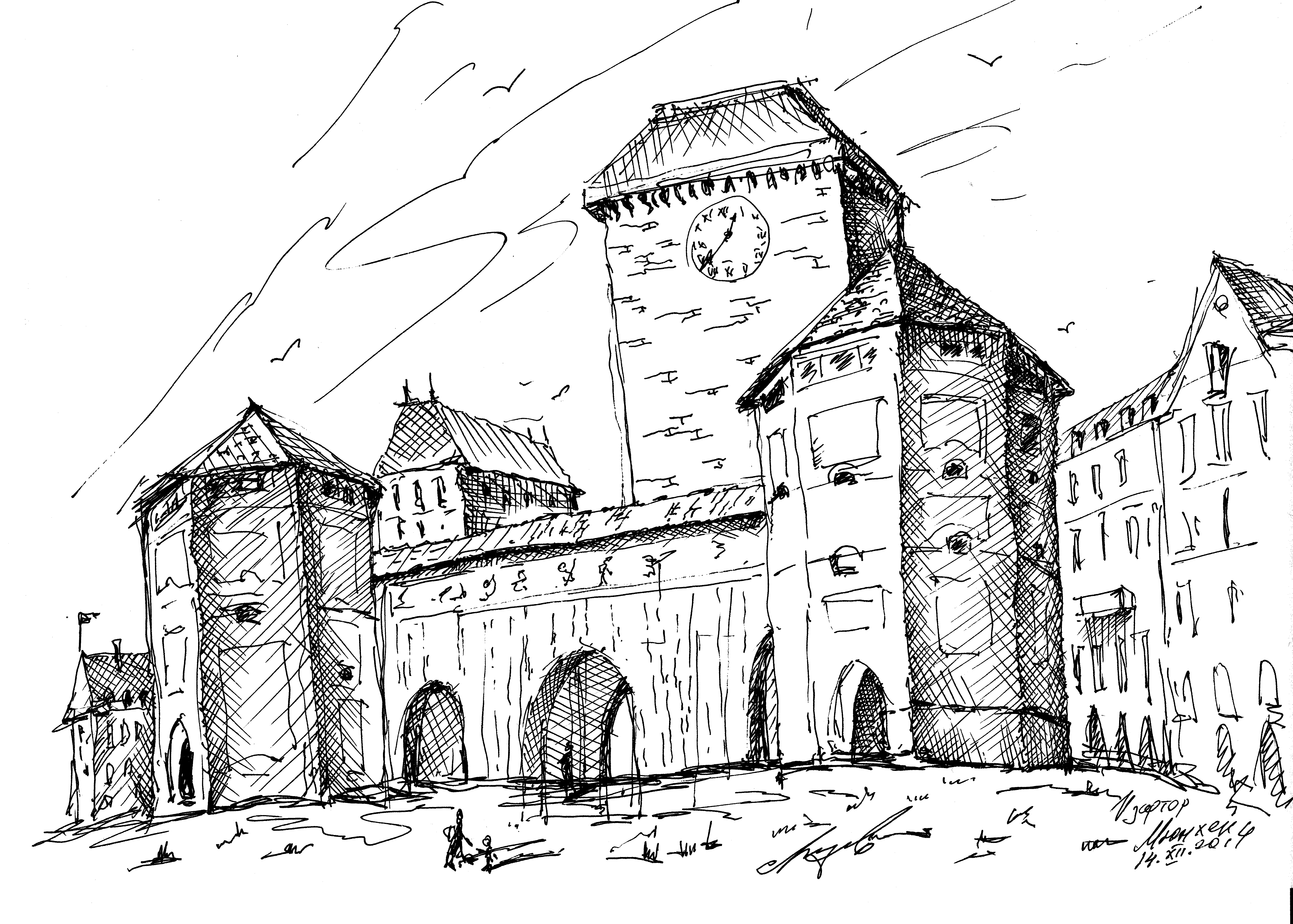 "Узники науки". Дворик библиотеки университета г. Феррара. Библиотеку устроили в здании бывшего сахарного завода. Рисунок подарен Льву Титарчуку - ученому, другу и человеку - который провел здесь не один год. Надо иметь в виду, что университет г. Феррара заканчивал Николай Коперник. Ноябрь. 2016. Италия. |