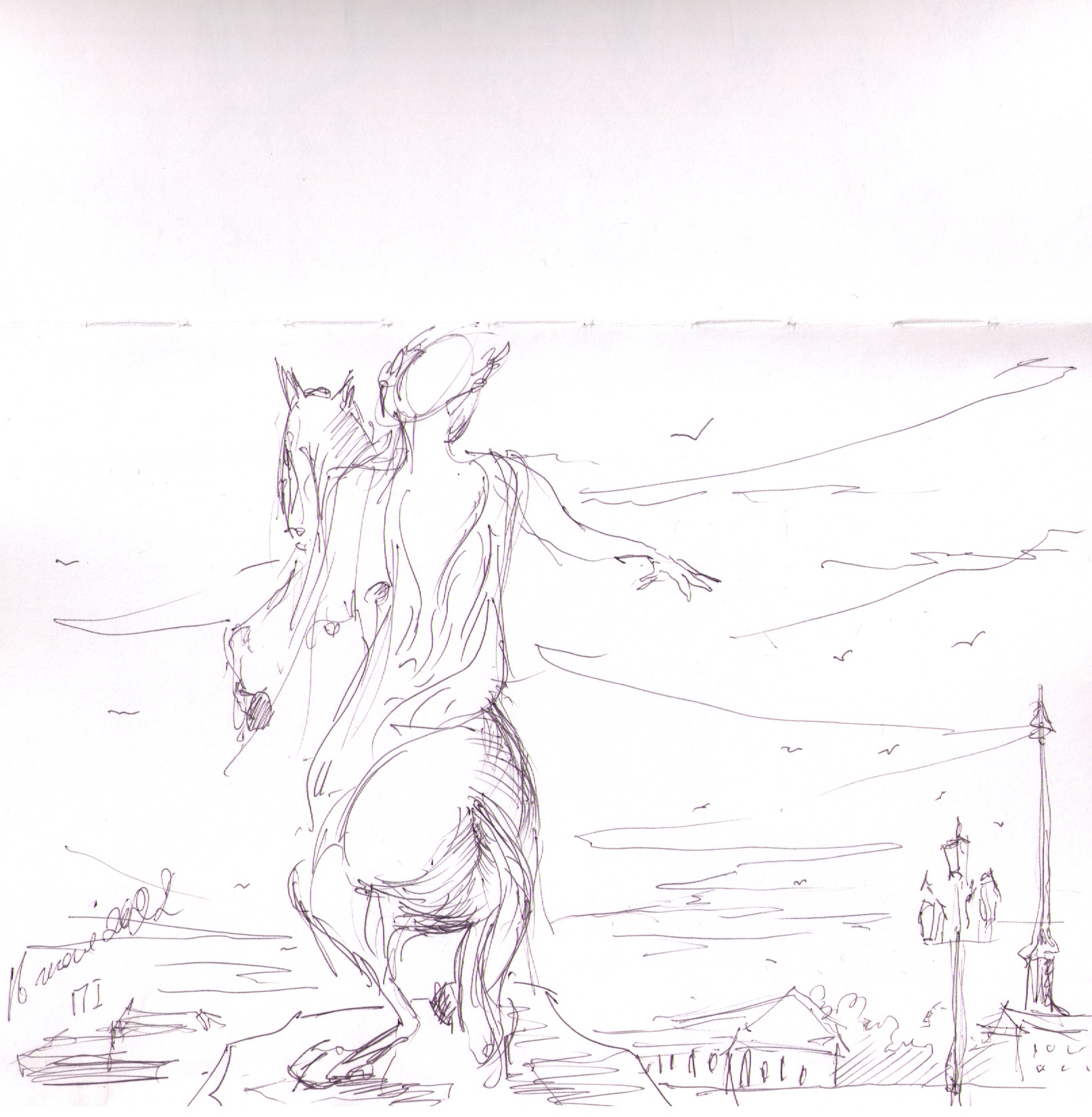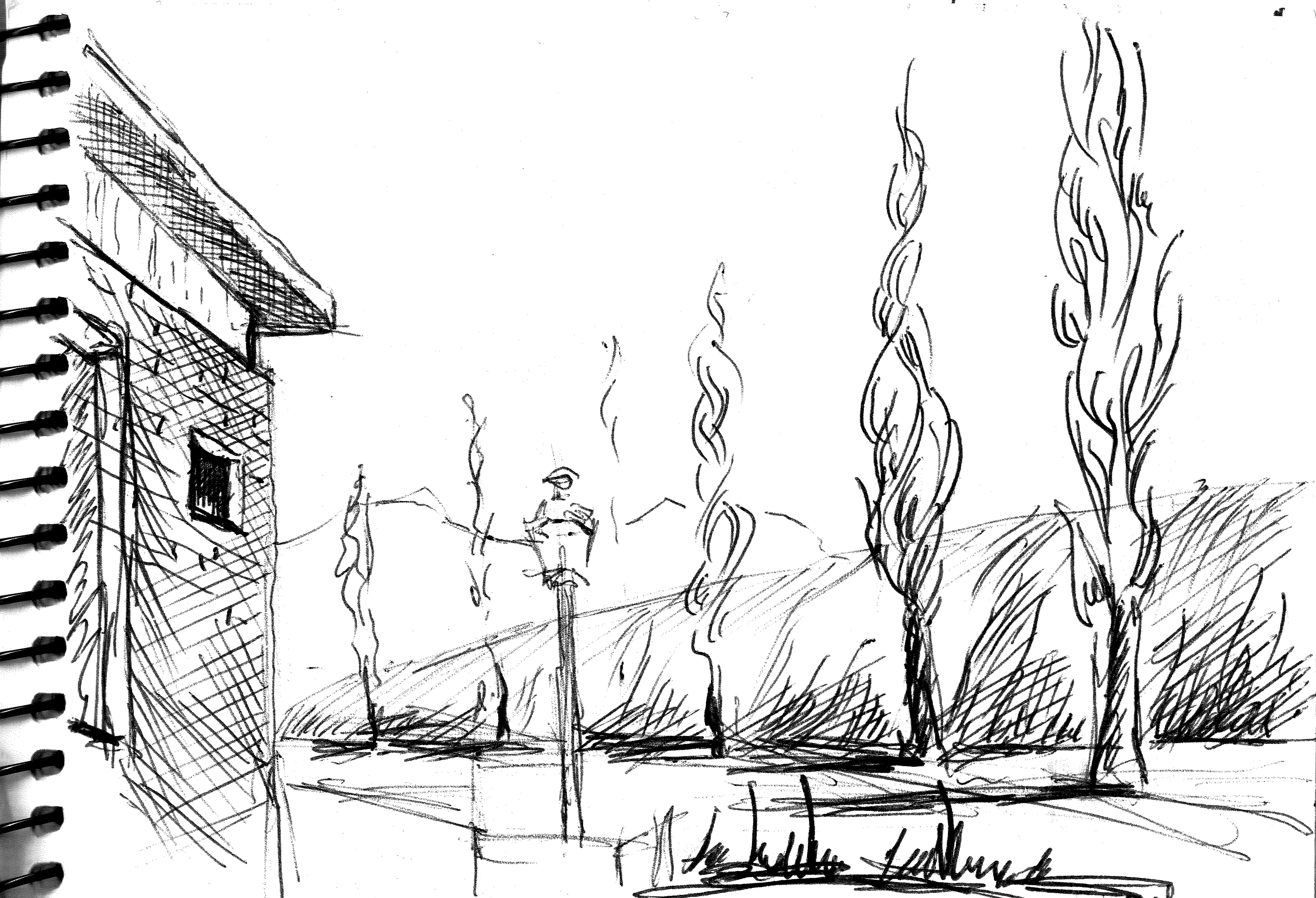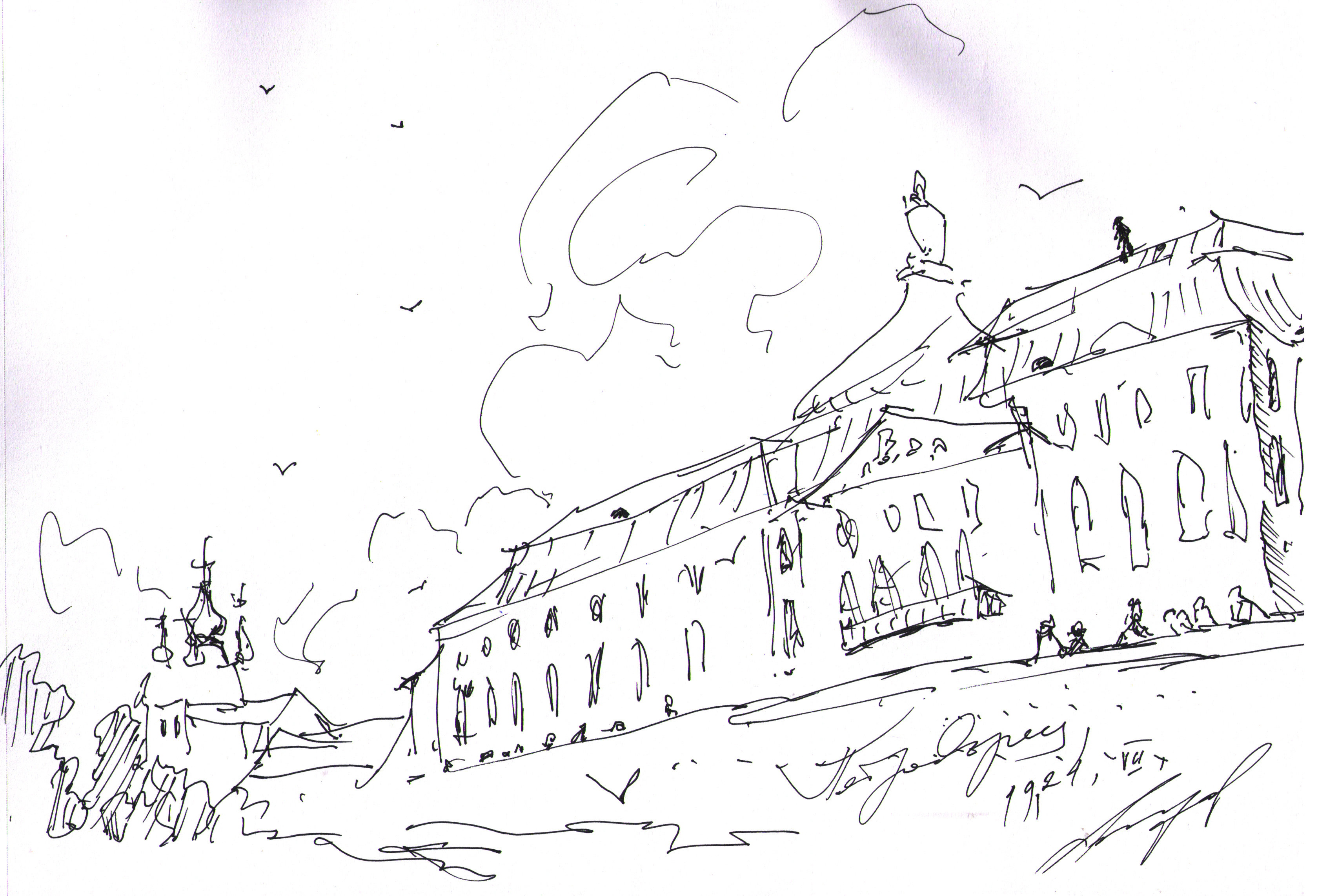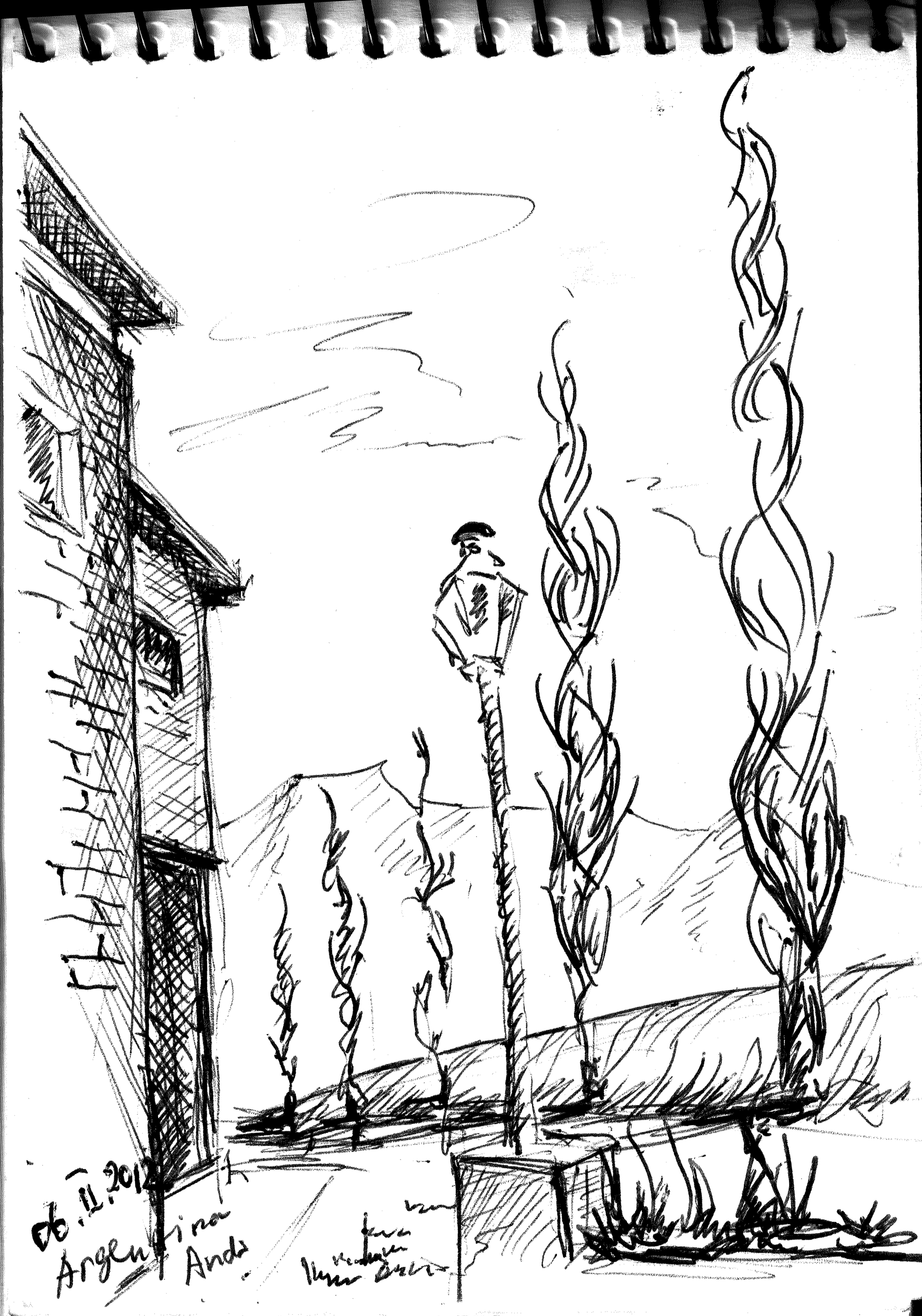 "Узники науки". Дворик библиотеки университета г. Феррара. Библиотеку устроили в здании бывшего сахарного завода. Рисунок подарен Льву Титарчуку - ученому, другу и человеку - который провел здесь не один год. Надо иметь в виду, что университет г. Феррара заканчивал Николай Коперник. Ноябрь. 2016. Италия. |