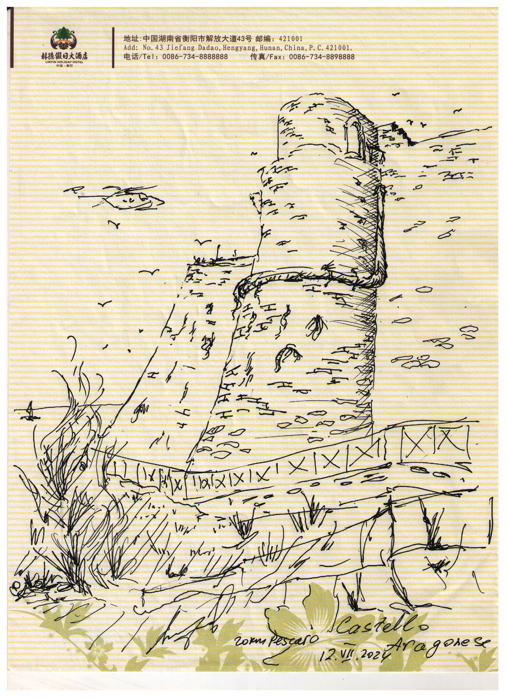 Крепость Castello Aragonese. 20 км южнее г.Пескара. Адриатическое побережье. 12 Июля 2024. Использован лист китайской бумаги с предыдущего конгресса в г. Синьянг |