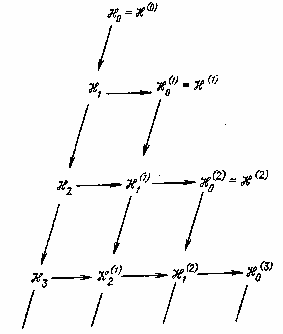 Разумеется, до этого и H1(2), и H0(2)вычисляются по таким же формулам. Процедура идет сверху вниз и вправо. Последовательные шаги показаны па рис. 24 стрелками.