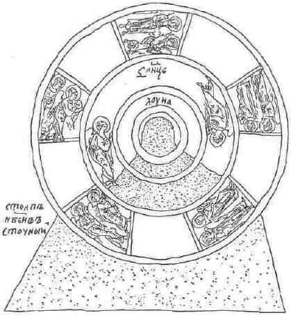 Третье космографическое сочинение Древней Руси находится в книге Иоанна Дамаскина: "Точное изложение православной веры". Взгляды, изложенные в ней, уже прямо противоположны взглядам Космы. В книге Иоанна Дамаскина Зодиак принимается во всех подробностях, называются 12 зодиакальных знаков и говорится "через тыя дванаде-сят зодий планеты, солнце и луна преходят"; в этом, однако, наши предки видели посягательство на учение об управлении механизмом вселенной ангелами. "Звезды движутся не зверями, а ангелами божиими", говорили они, даже в более позднее время, в XVII в., во времена прений по поводу новшеств, привезенных братьями Лихудами из Вильно в Московскую славяно-греко-латинскую академию.