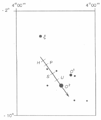Eri. На рис.4 показан этот участок неба и путь звезды o2
