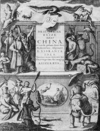 Мы проходим через Великую стену в долину. Прибытие в город Халган и прием посольства в нем. Пройдя вторые сторожевые ворота, мы попали в долину величиной примерно 300 саженей, где увидели несколько больших ив, а по западной стороне у подножия горы -- великолепную кумирню. На расстоянии выстрела из мушкета стоит город Халган, окруженный высокой четырехугольной стеной и малолюдный. Меня встретили салютом из трех железных пушек, и здесь, в предместье, я заночевал. Улицы были так полны сбежавшимся народом, что с трудом можно было пробиться. Людей привлекло любопытство, они дивились звукам моих труб и литавр, которые казались им очень странными, так как они ничего подобного никогда не видели и не слышали. Вечером сановник прислал мне привет и приглашение к ужину во дворце богдыхана, где тот останавливался, когда бывал здесь проездом. Придя туда, я встретил помимо сановника также губернатора и главных чиновников города. После того как было выпито несколько чашек чаю, меня угостили прекрасным обедом, да к тому же показали пьесу, сопровождаемую китайской музыкой. Последняя состоит в том, что бьют во всяческие тазы, играют на струнных инструментах. -Всем этим создают странный я беспорядочный шум, так что возникает желание бежать.