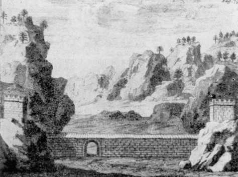 Прибытие к Великой китайской стене и ее подробное описание. 27 октября завидели мы по высшим точкам гор несколько сторожевых, башен и в тот же день достигли Великой стены, или Цаган Крим1, которая действительно кажется одним из чудес света. Примерно в 50 саженях от нее была долина, с обеих сторон которой были построены форты, или: укрепления, из тесаного камня, и от одного укрепления к другому, поперек долины, тянулась стена высотой примерно 3 сажени, с открытым в ней проходом.