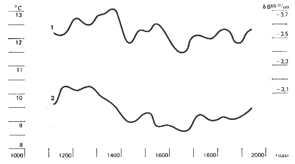 Последние 1-2 тыс. лет климат характеризовался небольшими колебаниями по сравнению с теми, которые имели место в прошлом, при переходе от межледниковых к ледниковым периодам. Однако и за этот период отмечались заметные колебания климата.