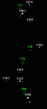 Да, далеко ушел Кейд к 10 веку, но попытка привязать его к звезде Птолемея #780 не проходит. Сиротой остается #779 (в одной из статей КНФ предлагают ее отождествить со звездой 6.3 звездной величины BS1362, которая при малой высоте Эридана над горизонтом, из-за поглощения в атмосфере вообще не видна). Без пары остаетcя и BS1298. Вот такие манипуляции.