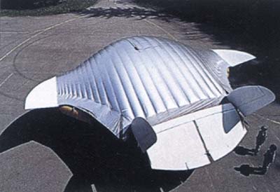 Небольшая швейцарская фирма Prospective Concepts AG вот уже более 5 лет работает по заказам немецкого промышленного гиганта Festa над новыми технологиями применения пневматики в промышленности. Одной из последних ее разработок стал гибрид самолета с дирижаблем Stingray. Летательный аппарат представляет собой самолет типа "летающее крыло". Причем крыло это наполнено легким газом и обеспечивает за счет аэростатической подъемной силы подъем четверти полезной нагрузки. В результате Stingray взлетает и садится с небольшим разбегом и пробегом. А в будущем при использовании пневматической катапульты будет стартовать практически с места.