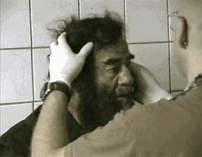 Отношение это, вне всяких сомнений, скотское. Причем подчеркнуто и даже эксгибиционистски (т.е. сознательно выставляемое наружу, напоказ отношение) скотское. Большего бесстыдства и клинического человеконенавистничества - чем в демонстрируемых по СМИ отношениях Homo sapiensов к человеку Хусейну - трудно и вспомнить. Послушайте. Вот человек Саддам Хусейн. Его двоих детей и 14-летнего внука, Мустафу, убили в июле 2003 года две сотни американских спецназовцев (в захвате самого Хусейна, как сообщали сами американцы, участвовало 600 солдат). Вооруженные до зубов Люди Года (американский журнал "Time" в декабре 2003 года единогласно утвердил "Человеком года" Американского Солдата) решили не рисковать, поэтому по дому с детьми и внуком Хусейна выпустили десятки ракет. В марте 2003 года на страну, которой руководил Хусейн, по бандитски напали и оккупировали.(2) Убили как минимум 7 600 иракских военных и 3 200 гражданских лиц - напомню, на всякий случай, что военные и лица также являлись отдельными живыми человеками, гуманами - humans, human beings. Эти цифры приведены в опубликованном 20 октября 2003 года "Проектом альтернатив в сфере обороны" (the Project on Defense Alternatives) анализе потерь военных и гражданских лиц со стороны Ирака.(3) Его, законного президента Ирака, не только захватили, но и подвергли иным изощренным и многочисленным унижениям. CNN постаралась, чтобы заранее сценированные и отрепетированные захват и унижения были растиражированы в триллионы показов. Вот американский военврач ищет у Саддама вшей (Кадр CNN).