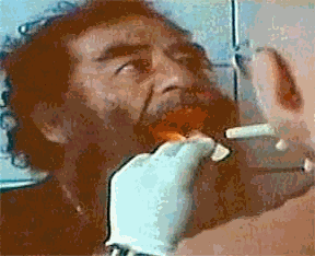 А вот американский военврач осматривает зубы Саддама (Кадр CNN)