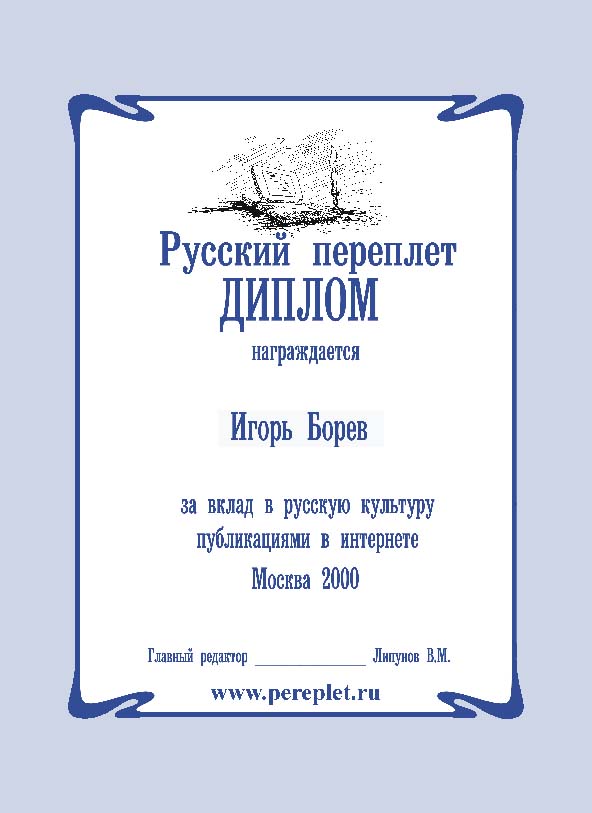 Премия журнала "Русский переплет" за 2000 год