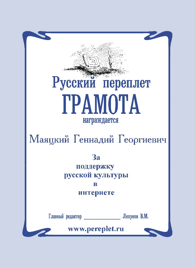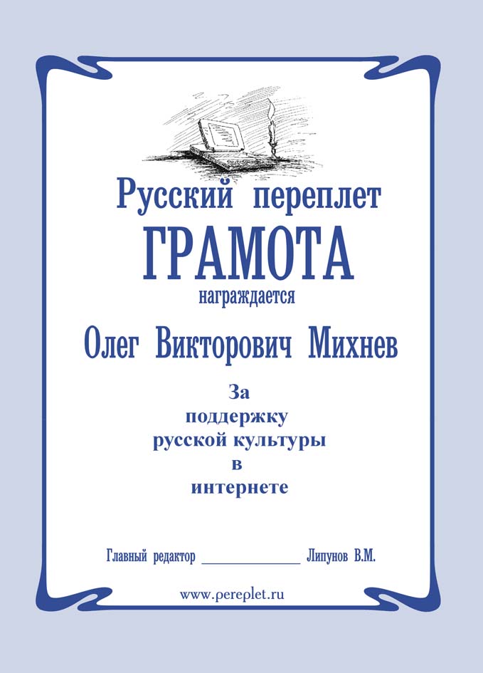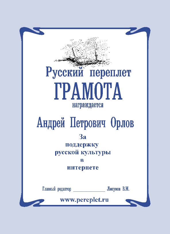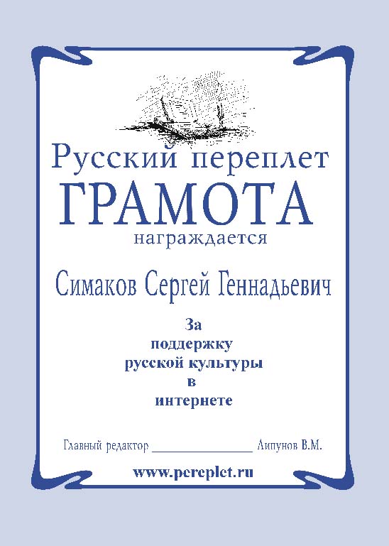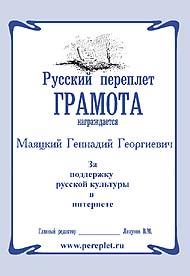 ЗА ВКЛАД В РУССКУЮ КУЛЬТУРУ ПУБЛИКАЦИЯМИ В ИНТЕРНЕТЕ