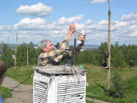 ведущий инженер обсерватории ИГУ Виктор Капленко устанавливает