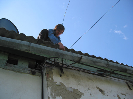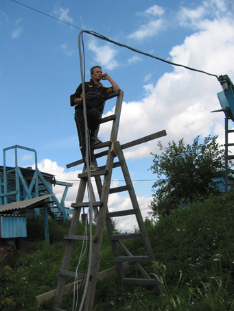 Евгений Горбовской (в процессе протяжки кабелей) дает по телефону