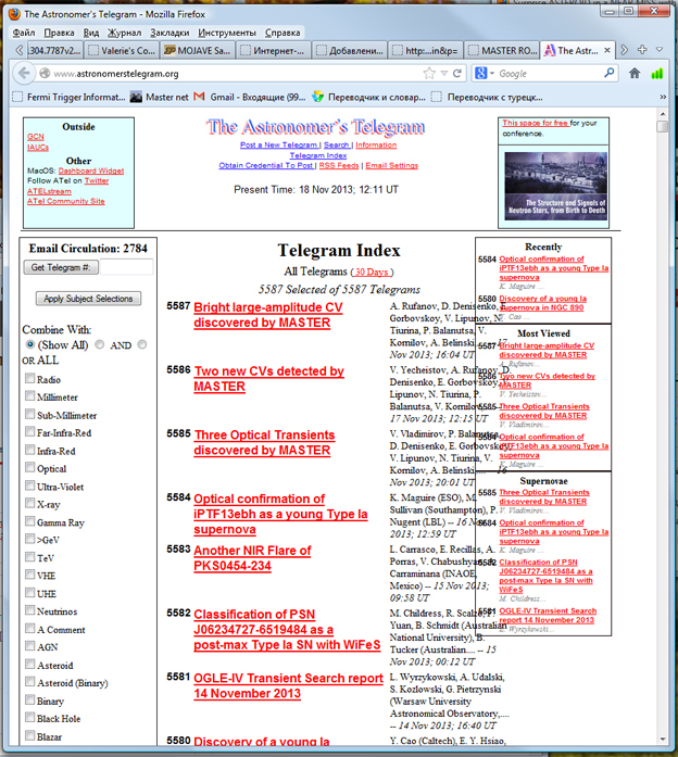 Ну и в приложении - исторический скриншот. Три верхние телеграммы ATel