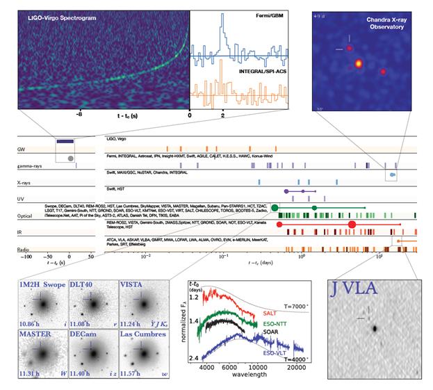 Комбинированное фото врыва 17 августа 2017 года в галактике NGC 4993 полученное на телескопах