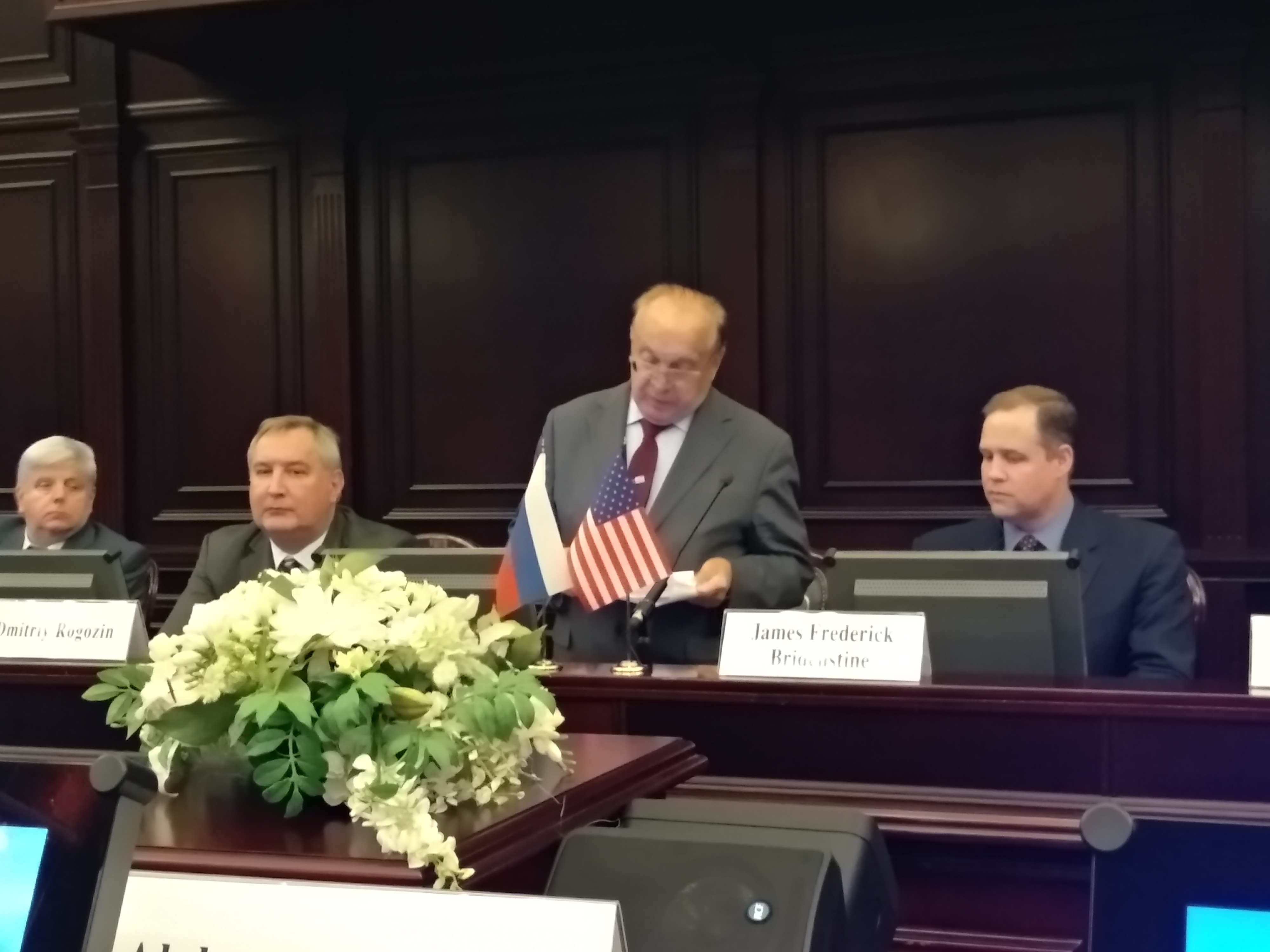Бывший лётчик и политик, республиканец от штата Оклахома Джеймс Брайденстайн хорошо смотрелся с нашим бывшим политиком и вертолётчиком Дмитрием Рогозиным. Оба очень здорово говорили об освоении космоса, о дружбе народов и освоении Луны.