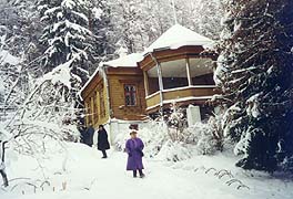 Столовая - самая большая и светлая комната в доме с выходом на веранду - любимое место отдыха писателя. В столовой в ранний "предрассветный час" Пришвин начинал свой день работой над дневником. Только в наши дни, после отмены политической цензуры на литературные тексты, дневник писателя (первые записи относятся к 1905 году, а последние сделаны незадолго до кончины Михаила Михайловича 16 января 1954 года) впервые публикуется без всяких сокращений. Появление дневника писателя меняет общепринятое представление о Пришвине как "певце природы".
