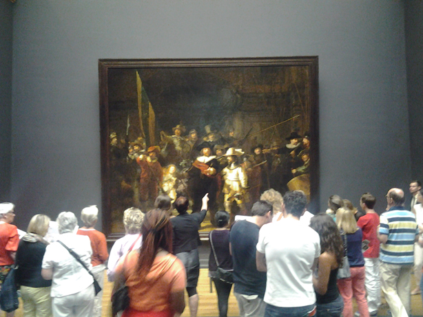 На рисунке Отель Doelen (Амстердам), в котором жил Ваш покорный слуга и который стоит на месте, где во время Рембрандта встречались ополченцы Амстердама. На одной из встречь стрелки капитана Франса Баннинга Кока решили заказать групповой портрет Рембрандту. Так появился "Ночной дозор".