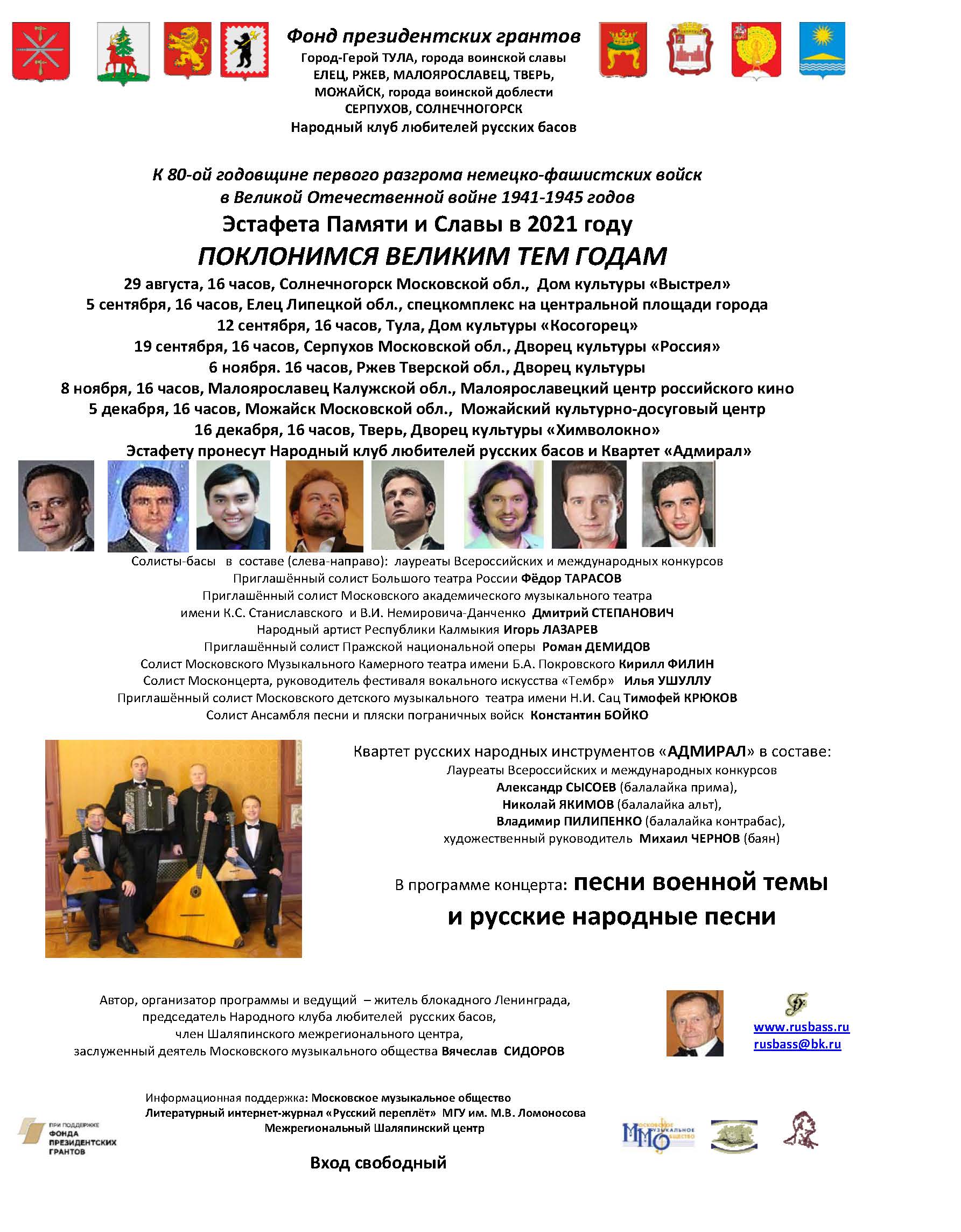 Фонд президентских грантов Город-Герой ТУЛА, города воинской славы ЕЛЕЦ, РЖЕВ, МАЛОЯРОСЛАВЕЦ, ТВЕРЬ, МОЖАЙСК, города воинской доблести СЕРПУХОВ, СОЛНЕЧНОГОРСК