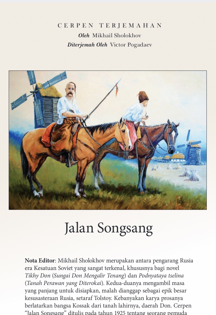 В мартовском номере малайзийского литературного журнала «Деван Састра» опубликован рассказ Михаила Шолохова «Кривая стежка» в моем переводе на малайский язык. Хотел бы выразить благодарность наследникам писателя, которые разрешили перевести и опубликовать рассказ безвозмездно. Русская и советская литература становится все ближе сердцам малайзийцев!