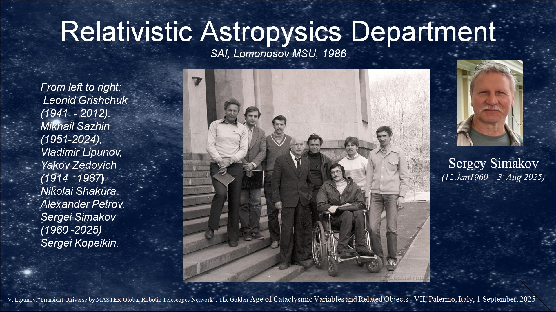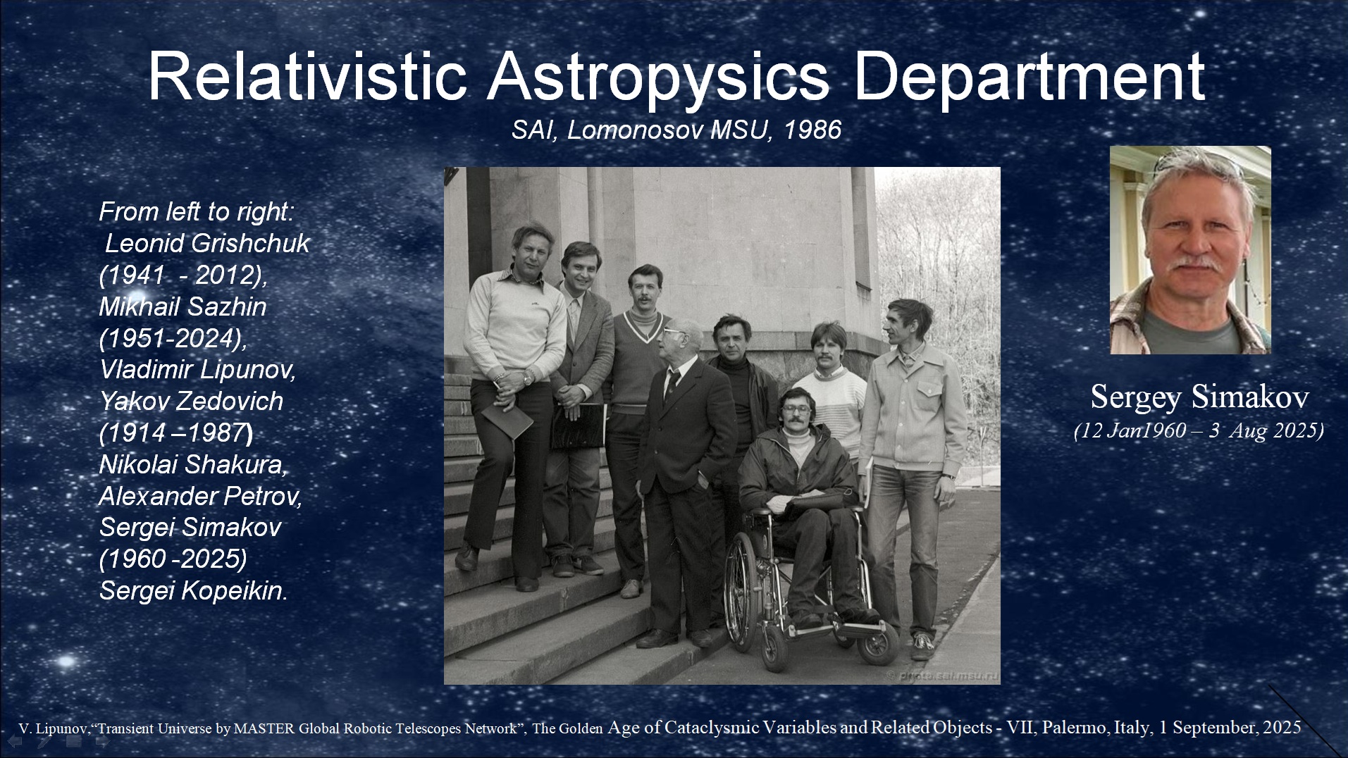 Смотрите полностью семинар ОСА им.Я.Б.Зельдовича N402, посвященный памяти Сергея Симакова.