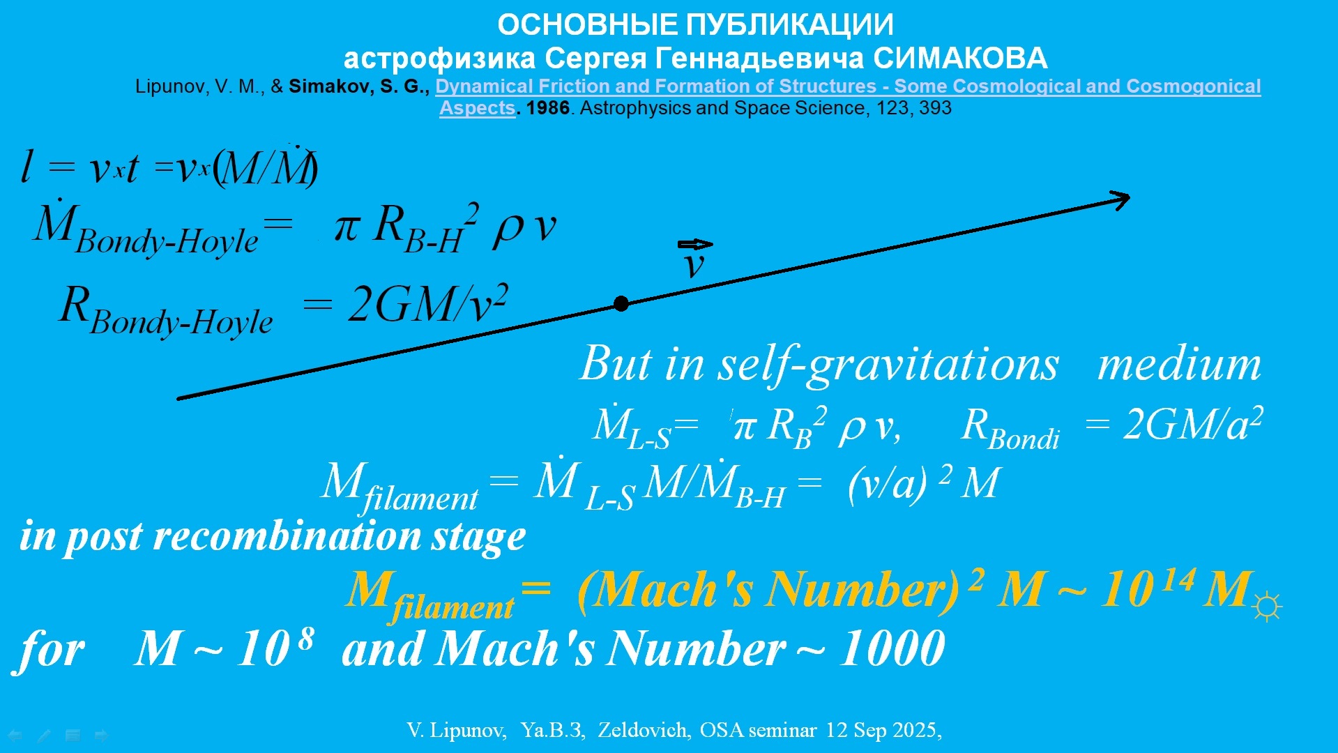 Так возникла работа опубликованная в 1986г. зарубежом под названием "Dynamical Friction and Formation of Structures - Some Cosmological and Cosmogonical Aspects" и более подробно в СССР Аккреционный механизм формирования крупномасштабной структуры Вселенной
