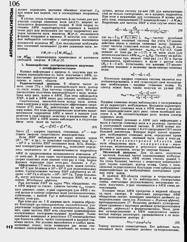 Оптический диапазон. Для эл.-магн. излучения с частотой, больгаей частот од нома г ионных возбуждений, проницаемость АФМ можно считать равной 1. На столь больших частотах с веществом ьзаимодейст-вует только электрич. вектор волны. Связь с магн» системой осуществляется благодаря спин-орбитальному взаимодействию на возбужд╦нных электронных уровнях магн. иолов.