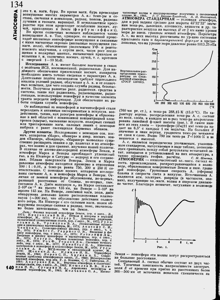Лит.: Фтшка верхней атмосферы Земли, zjcp. с англ., Л., 1971; Красовсний В. И., Штили и штормы и верхней атмосфере, М,( 1971; Редерер X., Динамика радиации, захваченной геомагнитным полем, пор. с англ., М., 1972; Г у л ь-е л ь м и А, В., Т р о и ц к а н Е. А,, Геомагнитные пульсации и диагностику магнитосферы, М., 1973; А к а с о ф у С, И., Ч е имен С., Солнечно-земная физика, пер. с англ., ч. 1, М., 1974; Р и ш б f, т Г., Г а р р и о т О. К., Введение в физику ионосферы, пер. с англ., Л., 1975; Ратклифф Д ж., Введение в финику ионосферы и магнитосферы, пер. с англ., М., 1975; Б а у а р У,, Физика планетных ионосфер, пор, с англ., М,, 1976; Р о ч Ф., Г " р д о н Д ж., Свечение ночного яеба, пер. с англ,, М., 1977; К р и н б е р г И. А., Кинетика электронов в ионосфере и планмосферс Земли, М., 1978; Г у л ь-е л ьм и А. В., МГД-волны в околоземной плазме, М. Ш9; Щепкин Л. А., Климов II, П., Термосфера Земли, м., 1980; Л е р о в С. П., X р г и я н А. X,, Современные проблемы атмосферного озона. Л., 1980; Метеорология верхней атмосферы, под ред. Г. А. Кокина, С, С. Гайгерсва, Л,, 1981; Харгривс Д ж, К., Верхняя атмосфера и солнечно-земные свяэи, пер. с англ., Л., 1982; КошелевВ. В., Климов Н. Н,, Сутырин Н. А., Аэрономия мезосфо-ры и нижней термосферы, М., 1993; Молчанов О. А., Низко-