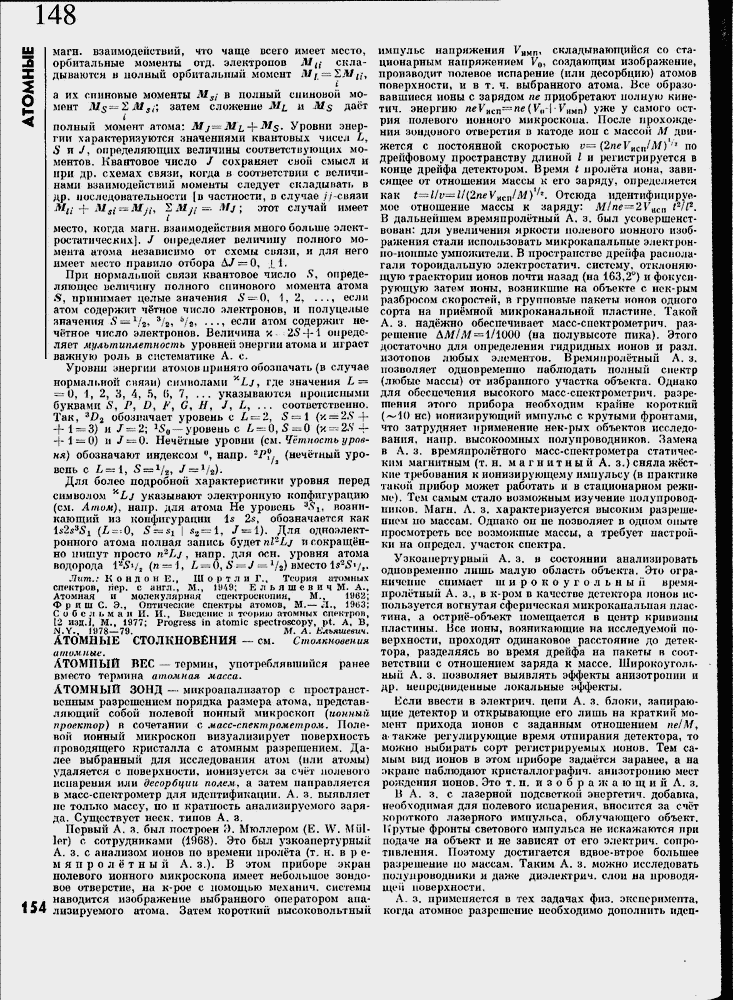 как t=l/v=l/(2neVuCl}/M)1^. Отсюда идентифицируемое отношение массы к заряду: М/пе = 2УЛСП ttfi2. В дальнейшем времяпрол╦тный А, з. был усовершенствован: для увеличения яркости полевого ионного изображения стали использовать микрокапальпые электронно-ионные умножители. В пространстве дрейфа располагали тороидальную электростатич. систему, отклоняющую траектории ионов почти назад (на 163,2°) и фокусирующую затем ионы, возникшие на объекте с нек-рым разбросом скоростей, в групповые пакеты ионов одного сорта на при╦мной микроканальной пластине. Такой А. з. над╦жно обеспечивает масс-споктрометрич. разрешение &М/М = 1/1000 (на полувысоте пика). Этого достаточно для определения гидридных ионов и разл. изотопов любых элементов. Времянрол╦тный А. з. позволяет одновременно наблюдать полный спектр (любыо массы) от избранного участка объекта. Однако для обеспечения высокого масс-спсктромстрич. разрешения этого прибора необходим крайне короткий (~10 не) ионизирующий импульс с крутыми фронтами, что затрудняет применение нек-рьтх объектов исследования, напр, высокоомных полупроводников. Замена в А. з. времяпрол╦тного масс-спектрометра статическим магнитным (т.н. магнитный А. з.) сняла ж╦сткие требования к ионизирующему импульсу (в практике такой прибор может работать и в стационарном режиме). Тем самым стало возможным изучение полупровод-пиков. Магн. А. з. характеризуется высоким разрешенном по массам. Однако он пе позволяет в одном опыте просмотреть вес возможные массы, а требует настройки на опредсл. участок спектра.