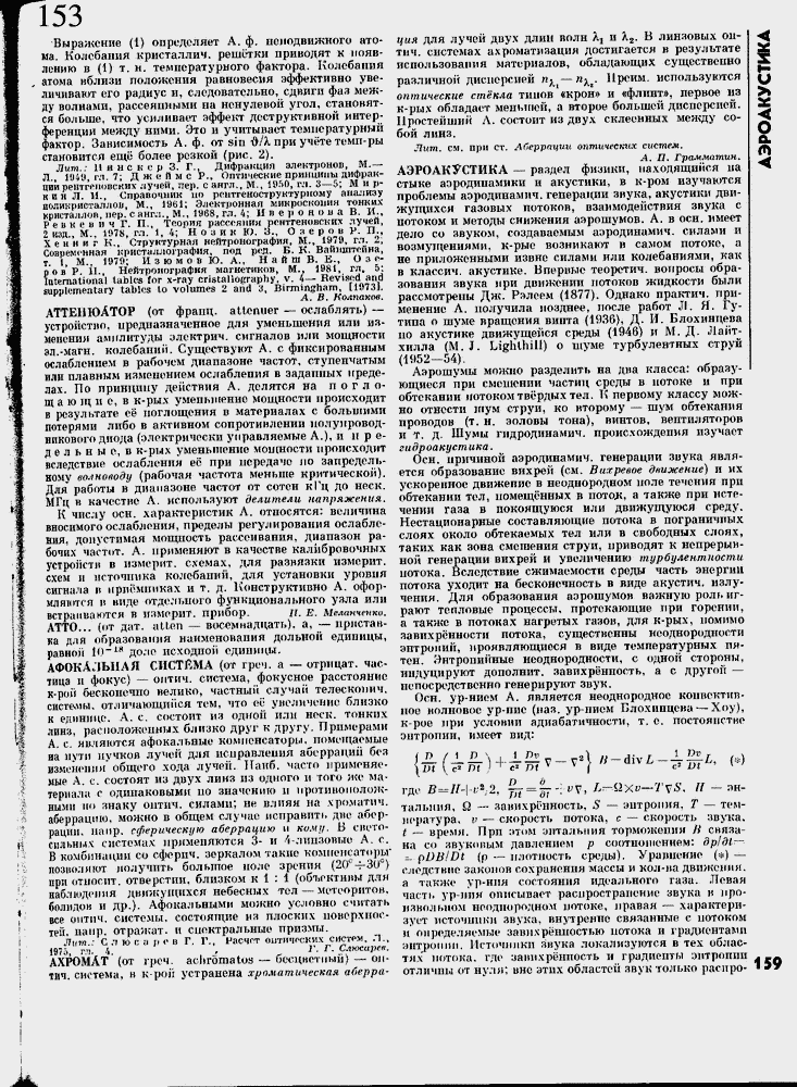 АТТО... (от дат. alien ≈ восемнадцать), а, ≈ирлстаи-ка для образования наименования дольной единицы, равной 10~1Й доле исходной единицы. АФОКАЛЫ1АЯ СИСТЕМА (от грсч. а ≈ отрнцат. частица и фокус) ≈ оптич. система, фокусное расстояние к-рои бесконечно велико, частный случай телескоиич, системы, отличающийся тем, что е╦ увеличение близко к единице. А, с. состоит из одной или неск. тонких линз, расположенных близко друг к другу. Примерами А. с. являются афокальпые компенсаторы, помещаемые ва пути пучков лучен для исправления аберраций без изменения общего хода лучен. Наиб, часто применяемые А. с. состоят из двух линз из одного и того же материала с одинаковыми по значению и противоположными но знаку О11ТИЧ, силами; не влияя на хроматич. аберрацию, можно в общем случае исправить две аберрации, напр. сферическую аберрацию и ком;/. В светосильных системах применяются 3- и 4^-шпзовыи А. г. В комбинации со сферич. зеркалом такие компенсаторы' позволяют получить большое поле зрения (20е-ь30°) при относит, отверстии, близком к 1 : 1 (объективы для наблюдения движущихся небесных тол ≈ метеоритов, боли дон и др.). Афокалъными можно условно считать все оитпч. системы, состоящие из плоских поверхностей, напр. отражат. и спектральные призмы.
