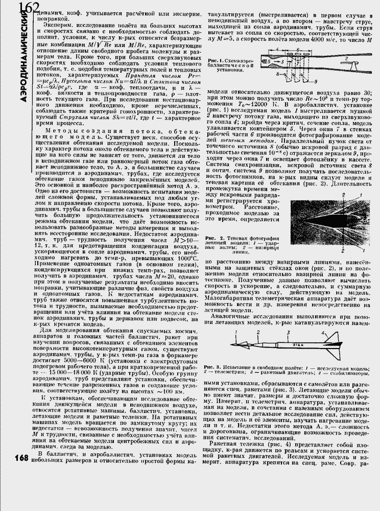 установками, сбрасываются с самол╦те» или разгоняются спец. ракетами {рис. 3). Летающие модели обычно имеют значит, размеры и достаточно сложную форму, Измерит, п телеметрич. аппаратура, устанавливаемая на модели, в сочетании с наземным оборудованием позволяет вести детальное исследование сил, действующих на модель и е╦ элементы, изучать нагревание модели и т, п. Недостатки этого метода А. э. ≈ сложность и дороговизна, ограничивающие возможность проведения систематич. исследований.