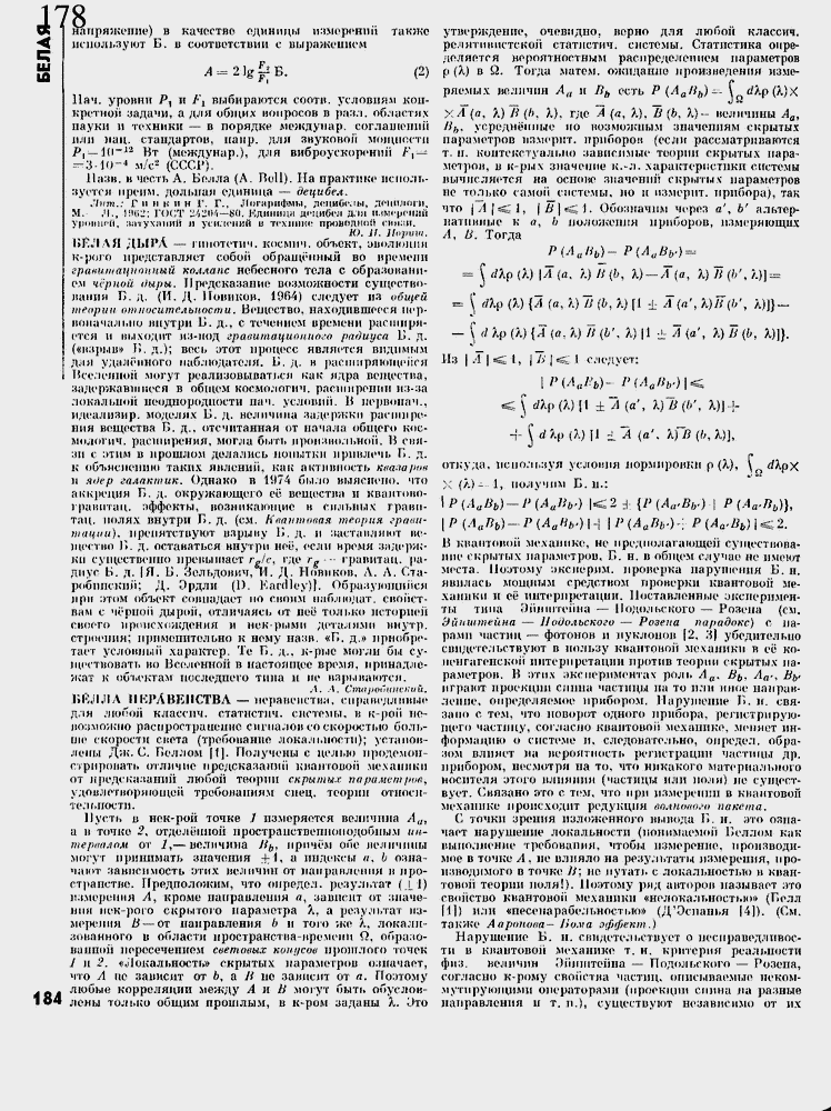 Нарушение Б. н. снкдетел.ствуот о несправедливости в кпантовол механике т.н. критерии реальности физ. величин «liijiHiTeiina ≈ Подольского ≈ Розена, согласно к-рому свойства частиц, описываемые леком-мутпрукялими операторами (проекции спина ла ])&зные направления и т, п.), существуют независимо от их