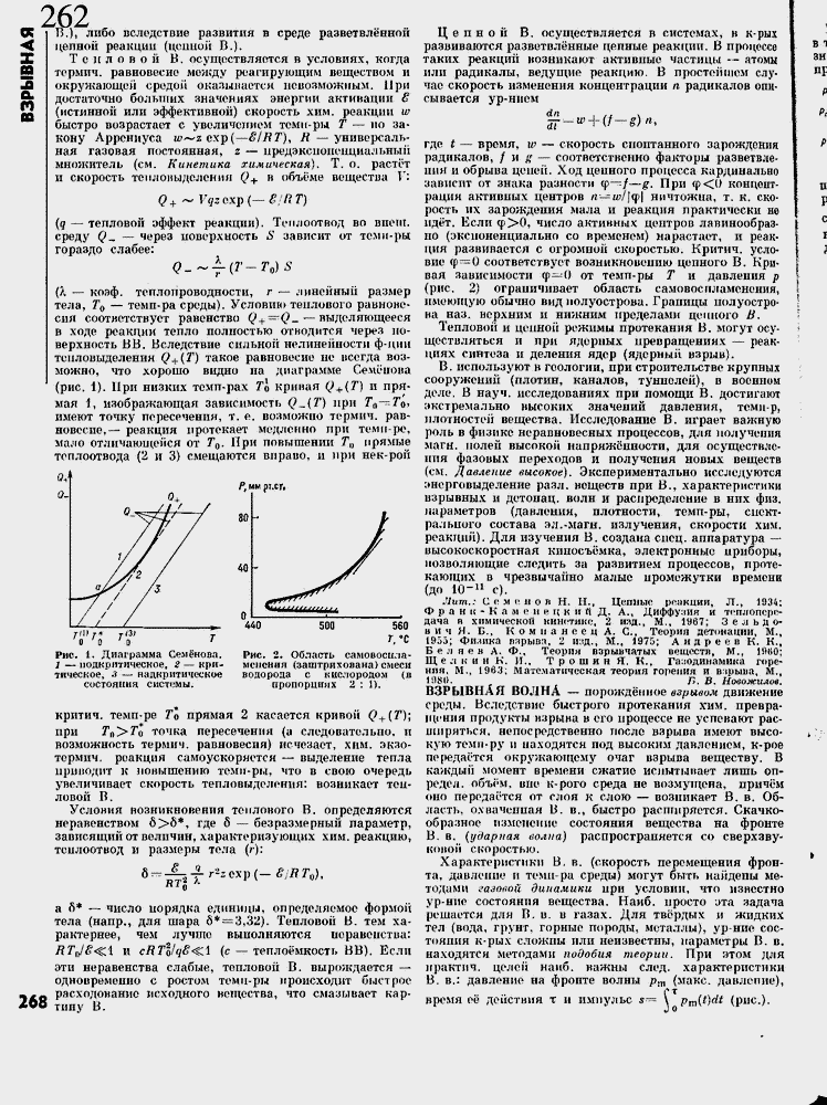 Лит.: Семенов Н. П., Ценные реакции, Л., 1934; Ф р а н it - К а м е н е ц к и и Д. А., Диффузия и теплопередача в химической кинетике, 2 ияд., М., 1967; 3 е л ь д о-н и ч Я. Б., К о м п а н е е ц А. С., Теория детонации, М., 1955; Физика внрыви, 2 изд., М,, 1975; Андреев К. К.,