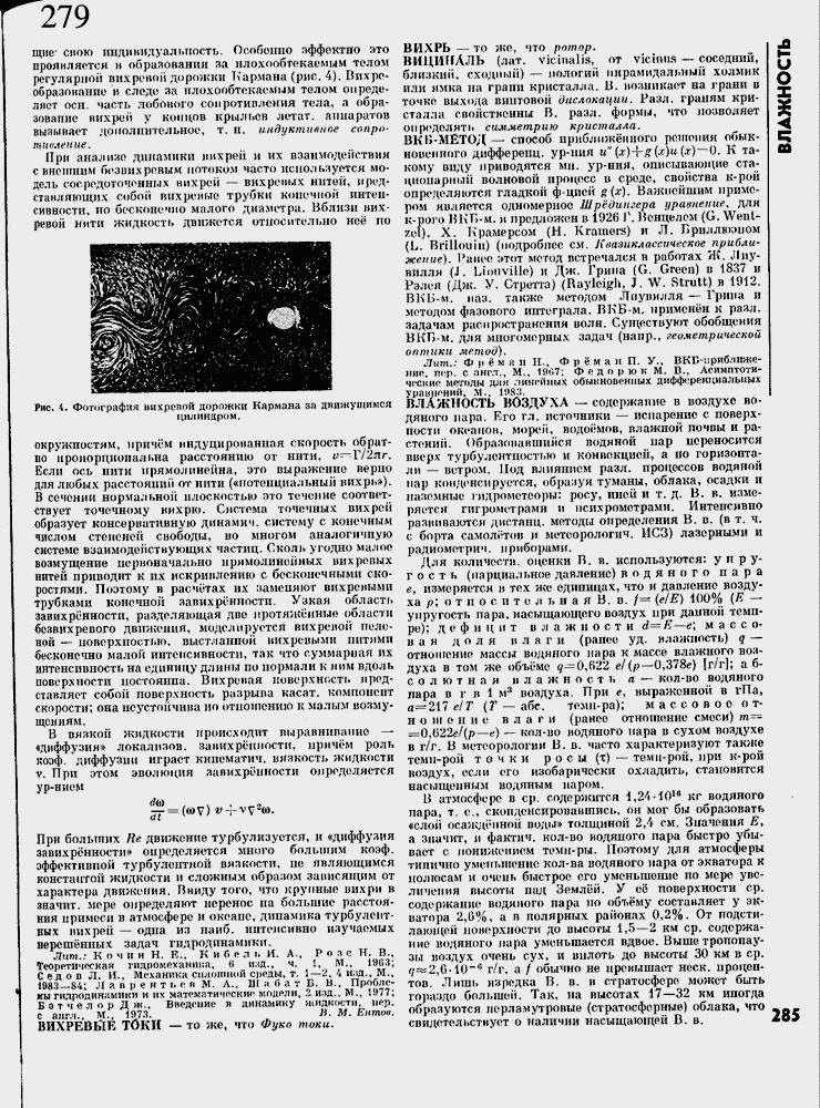 щие* спою индивидуальность. Особенно эффектно это проявляется н образовании за плохообЧекаемым толом регулярное! вихревой дорожки Тчармана (рис. 4). Впхро-образонание в следи за нлохообтекаемым телом определяет осн. часть лобоного сопротивления тола, а образование вихрем у концов крыльев легат, аппаратов вызывает дополнительное, т, н. индуктивное сопротивление.
