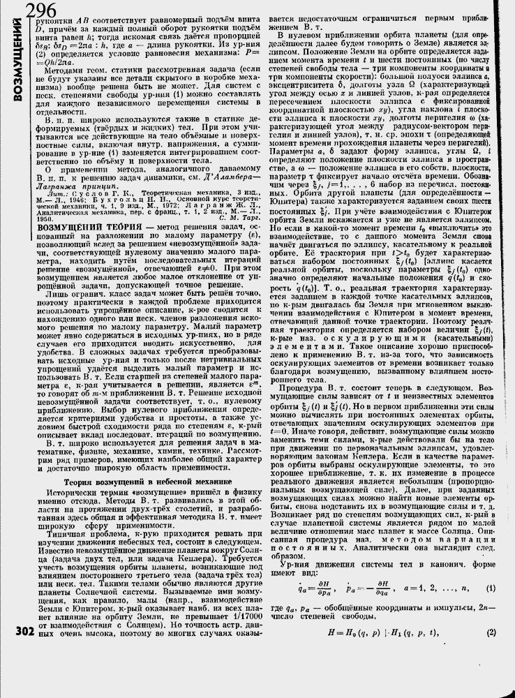 Типичная проблема, к-рую приходится решать при изучении движения небесных тел, состоит в следующем. Известно невозмущ╦нное движение планеты вокруг Содн-ца (задача двух тел, или задача Кеплера). Требуется учесть возмущения орбиты планеты, возникающие под влиянием постороннего третьего тела (задача тр╦х тол) или неск. тел. Такими телами обычно являются другие планеты Солнечной системы. Вызываемые ими возмущения, как правило, малы (напр., взаимодействие Земли с Юпитером, к-рый оказывает наиб, из всех планет влияние на орбиту Землтц не превышает 1/17000 от взаимодействия с Солнцем). Но точность астр, данных очень высока, поэтому во многих случаях оказы-