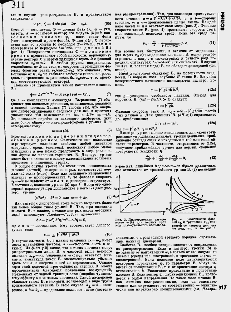 Для систем с дисперсией тоже можно выделить более или менее общие типы ур-ний В. Такт при описании эл.-магн. В. в плазме, а также нек-рых видов мезонных полей используют Клейна ≈ Гордона уравнением
