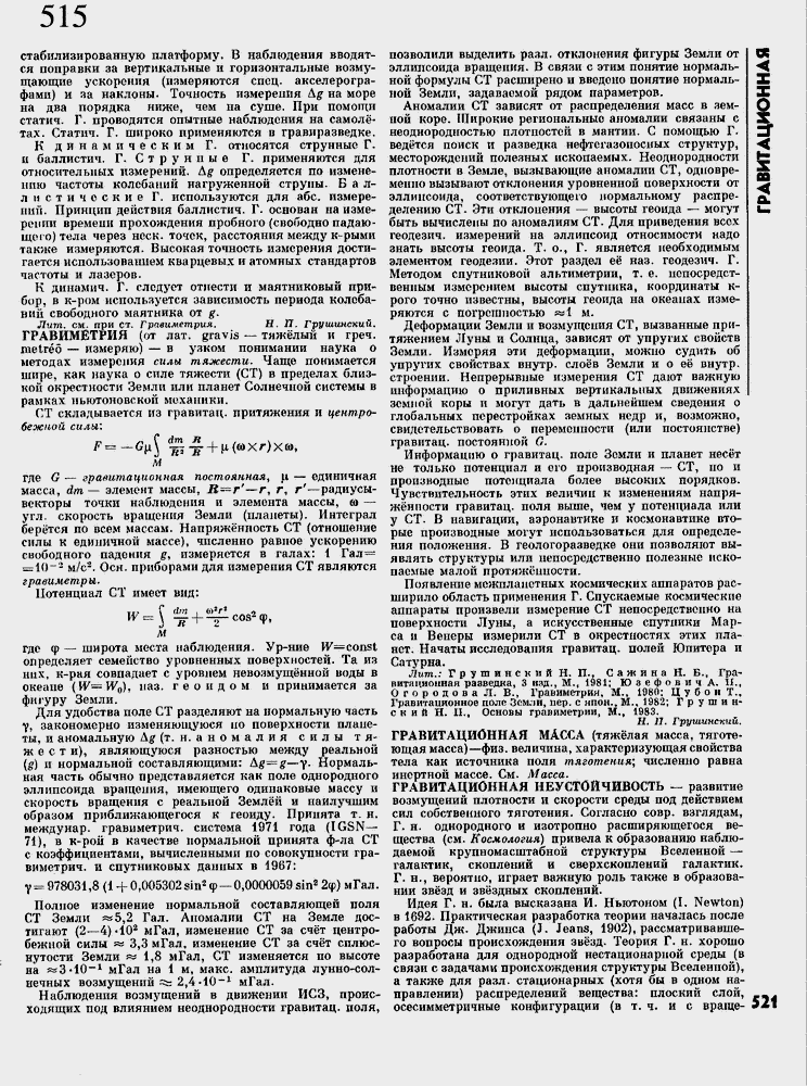 Лит. см- при ст. Гравиметрия. Н. П. Грушинский.
